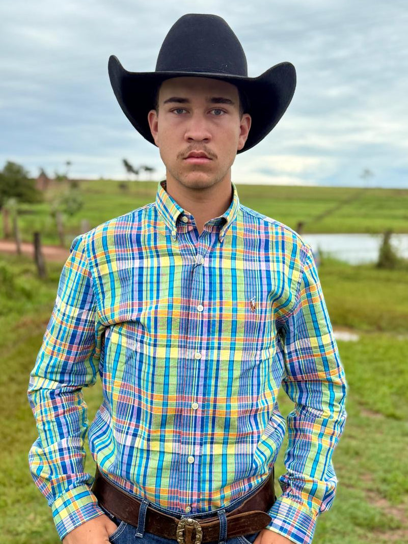 Camisa Manga Longa Americana Azul e Amarela Polo Ralph Lauren